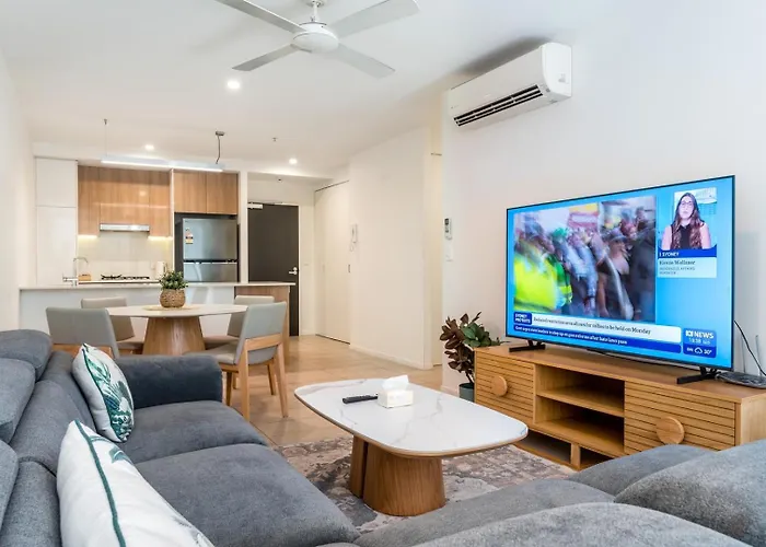 City-Center Cozy 2Bdr Apartment With Parking Brisbane est situé à moins de 1 km de l'université de technologie du Queensland et à 11 minutes à pied des Espaces verts Southbank Parklands.
